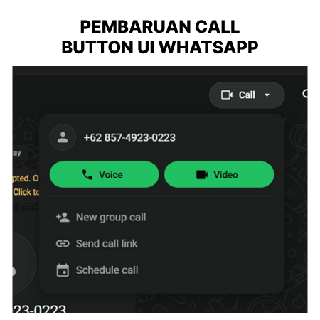 Kami ingin menginformasikan bahwa pada 28 Januari, pukul 08:50 WIB, WhatsApp melakukan perubahan tampilan (UI) pada tombol panggilan (Call).