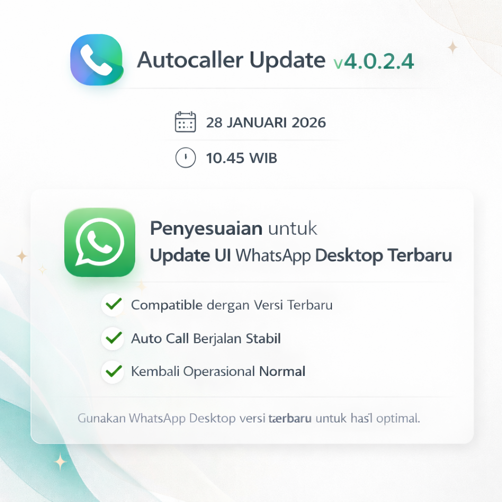Kami ingin menginformasikan bahwa Autocaller akan merilis *Update v4.0.4*, dengan detail sebagai berikut: